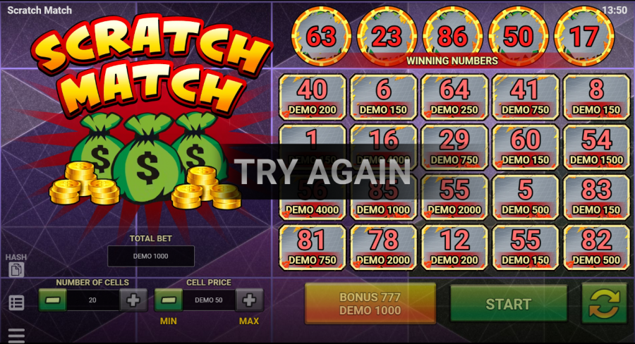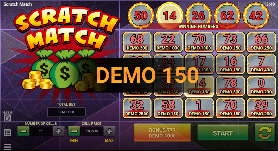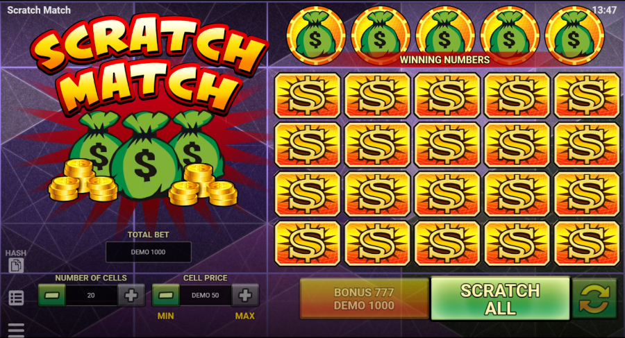 Scratch Match เกมลุ้นโบนัสจากค่าย Evoplay ผู้เล่นจะต้องทำการจับคู่ไอเท็มหรือสัญลักษณ์ที่เหมือนกันกับตัวเลข 5 ตัวเลขด้านบน รูปแบบเกมจะเหมือนกับเกมบิงโกให้ลุ้นรางวัลมากมายตั้งแต่จำนวนน้อยไปถึงมากสุด 50000 บาท โดยสามารถจับคู่ในแนวตั้งหรือแนวนอน และสามารถทำการเชื่อมต่อไอเท็มได้แค่ 4 ด้านเท่านั้น ตัวเกมมีรูปแบบหลากหลายและระดับความยากที่สูงขึ้นเมื่อผู้เล่นเลื่อนขั้นต่อไป เป็นเกมที่มีกราฟิกสีสันสดใสและมีเอฟเฟกต์เสียงที่น่าสนใจ เกมนี้เหมาะสำหรับผู้เล่นทุกวัยที่ชื่นชอบเกมเรียงลอยและต้องการทดลองความสามารถในการเชื่อมต่อไอเท็มเพื่อได้คะแนนสูงสุด สามารถเข้าทดลองเล่นผ่าน Demo Evoplay กับทางเว็บของเรา Richgaming ได้แบบฟรีๆ